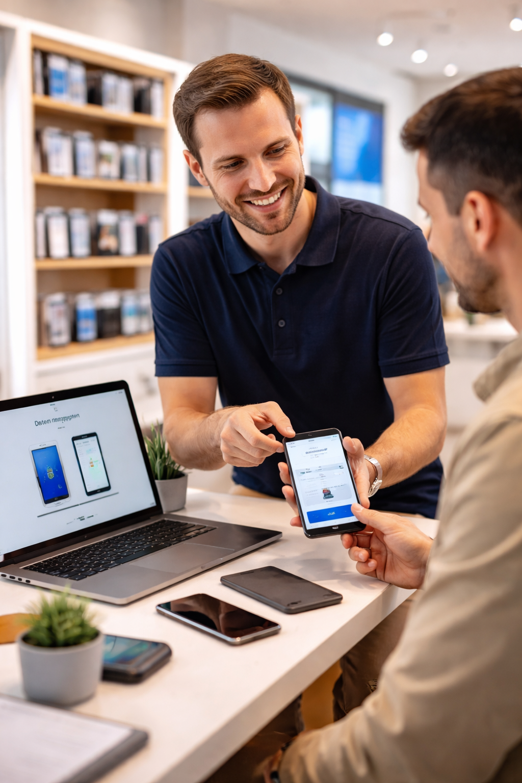 mit dem Anspruch, Beratung, Service und Kundenzufriedenheit stetig zu verbessern. Durch regelmäßige Schulungen, aktuelles Produktwissen und schnelle Hilfe vor Ort sorgen wir dafür, dass Sie immer die passende Lösung erhalten – vom optimalen Tarif bis zur Einrichtung Ihrer Geräte. Unser größter Erfolg sind zufriedene Kundinnen und Kunden, die uns weiterempfehlen und immer wiederkommen.
